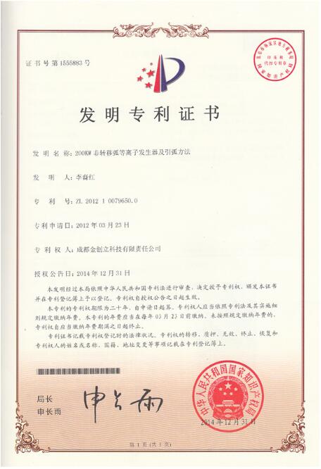 成都金創立科技有限責任公司成立于2007年,地址在成都新都區斑竹園。公司主要以等離子技術研發、應用、推廣為發展方向,開發、生產了先進的逆變電源、脈沖電源、真空鍍膜電源、大功率開關電源、專用脈沖電源、高壓電源和專用自動控制系統等設備。由于公司擁有多項發明專利和實用新型專利,以及公司在國內等離子電源技術方面的領先地位,成都金創立科技有限責任公司是中國電源學會理事單位。